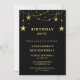 Black 6th birthday Party invite Gold Stars