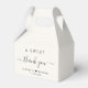 Chic light cream wedding favour box featuring "a sweet thank you" in simple typography and an elegant script with swashes, your first names joined together by a heart and your wedding date.