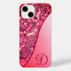 Chic cell phone case featuring multi-colour tones and hues of magenta, pink and red in a glamourous abstract design combined with brushed metal and personalised with a monogram or name in your choice of font style and size (shown in an elegant calligraphy script font). OPTIONS: The sample is shown in the iPhone 14 model and Barely There case style--other phone models and case style are shown on the ordering page. ASSISTANCE: For help with design modification or personalisation, colour change, resizing, transferring the design to another product or if you would like coordinating items, contact the designer BEFORE ORDERING via the Zazzle Chat MESSAGE tab below or email makeitaboutyoustore@gmail.com.