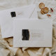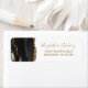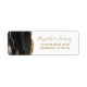 The left-hand edge of this elegant modern wedding invitation return address label features a black watercolor agate border trimmed with faux gold glitter. The customisable text combines gold-coloured handwriting and copperplate fonts on a white background.