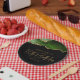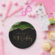 These chic, glamourous 70th birthday party paper plates feature a watercolor image of an agate geode in shades of green with faux gold glitter highlights. The words "70th Birthday" appear in faux gold glitter in a decorative modern handwriting font. Customise it with the name of the guest of honour and the date in gold coloured text.