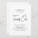 This chic and modern birthday invitation features a sleek white background with stylish black typography. The mix of bold serif and handwritten script fonts highlights the celebrant’s age in a classy, eye-catching way. Perfect for sophisticated birthday parties or milestone celebrations, this design exudes elegance and simplicity while maintaining a timeless look.