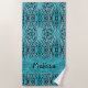 This Beach Towel features an chic animal print in blue. Beautiful feathers, glitter, cool pattern! Personalised gift idea for her.