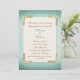 Chic Antique Aqua & Gold Wedding Rehearsal Dinner Invitation