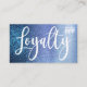 This is the perfect Loyalty Discount Card for a trendy, stylish, and modern business. This design features a simple white handwritten brush script typography on a faux printed aqua blue into light blue into baby blue sparkly glitter ombre gradient glamourous and chic background. These cards will add that personal and professional touch to your business and career advertisement.