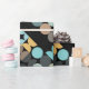 Beautiful contemporary light coral orange, aqua turquoise blue, dusty rose blush pink and mustard ochre brown yellow coloured geometric circles and half circles pattern on a black background. Elegant, stylish and eclectic minimalism design for the artistic hip trendsetter, vintage retro art style or abstract digital geometric motif lover. Available on a variety of modern crafts and office products. Such as wrapping and tissue paper, gift tags, bags and favour boxes, stickers, ribbons, stationery and envelopes.