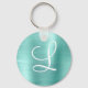 Chic Aqua Brushed Metal White Monogram Key Ring