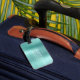 Add a touch of glam to your luggage with this elegant personalised bag tag. This chic design template features a large white script monogram on a background of aqua brushed metallic texture. A unique girly gift for birthday, holidays and any special occasion. Designed just for you by Extreme Tees!