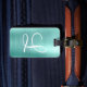 Chic Aqua Brushed Metal White Monogram Luggage Tag