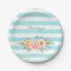 Chic Aqua Stripes Feminine Floral and Name Paper Plate