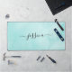 Chic Aqua Watercolor Calligraphy Script Desk Mat