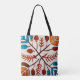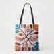 This autumn-themed tote bag showcases a vibrant design featuring a blend of seasonal elements in warm and cool tones. The central motif is a delicate arrangement of stylised leaves and berries in shades of burnt orange, deep brown, and rich teal. These colours are reminiscent of autumn foliage, with the deep teal adding a refreshing contrast to the earthy hues. The symmetrical design creates a balanced, organic pattern that evokes the natural beauty of fall. The black handles provide a bold contrast, making this tote bag both functional and stylish—perfect for carrying Halloween goodies or embracing the essence of the autumn season in your everyday outings.