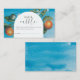 Make your celebration both beautiful and practical with our Baby in Bloom diaper raffle enclosure card, perfectly coordinated with the rest of the suite. A luminous blue watercolor background sets the tone, featuring a vibrant orange still on its delicate branch surrounded by soft white blossoms for an artful, high-contrast look. A crisp white arched frame rests gently over the scene, intentionally smaller so the citrus and florals subtly show through, adding depth and refined elegance. Inside the arch, your personalized raffle wording is styled in a graceful blend of vintage-inspired lettering and modern script, creating a cohesive, elevated feel. The result is a sophisticated, Mediterranean-inspired insert that keeps your baby shower organized while maintaining a timeless aesthetic.