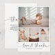 The contemporary design features a collage of four customisable photos, with one main image in the centre and three smaller ones below, complemented by elegant modern typography. On the back, you can add a personalised thank-you message to make it truly unique. Using the personalisation button, you can easily replace the photos and edit the text to fit your style. Make this beautiful card your own by adding your details! Visit our store for more products, collections, and custom rubber stamps.