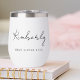 Give the best sister ever a gift she will love with this chic custom thermal wine tumbler, showcasing her name monogrammed in a stylish calligraphy script and "Best Aunt Ever" in elegant typography. If needed, edit in the design tool to increase or decrease the script size for longer or shorter names.
