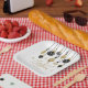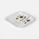 Black and gold Christmas tree ornaments and snowflakes highlight these square holiday party paper plates with your name and Merry Christmas in chic lettering. Perfect for your personal or business holiday parties. MATCHING items in our collection.