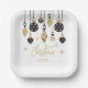 Chic Black and Gold Christmas Ornaments Paper Plate