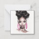 black and pink art, chic portrait, African American woman, stylish notes, modern design, sophisticated notecards, contemporary African American art, elegant illustration, black pink aesthetic, trendy stationery