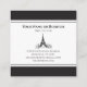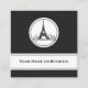 This chic, simple business card design features a black background with white shapes with text and an artful Eiffel tower graphic. Perfect for professional or personal use.