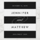 Chic and modern in bold black and white stripes, these wedding wine labels are perfect for your reception tables, favours or welcome bags. Design features your names in modern lettering flanked by your wedding date and wine varietal or other information of your choice.