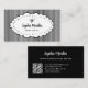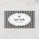 These elegant, whimsical business cards feature a hand-drawn wavy and polka dotted frame with a trendy bow, on a chic black and white striped background. The back of the business card is black and has a scannable QR code. Perfect for any feminine, stylish occupation or business, such as spa, salon, fashion, boutique, or vintage clothing sales.