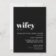 A modern black and white typographic bridal shower invitation with "wifey" as the main headline.
