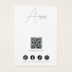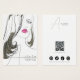 This jewellery display card features a minimalist drawing of a girl with long, brown hair and pink lips, designed in minimalist style for a clean, elegant look. It includes spots to showcase earrings on her ears and decorative typography. The card is customizable with your name, website, slogan, and social media icons, plus a QR code for easy digital access.