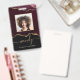 Chic Black Burgundy Red Gold Glitter Agate Photo ID Badge