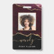 This chic ID badge features watercolor agate in burgundy red with faux gold glitter with a touch of black with your custom photo placed inside a gold hue border and your name and title at the bottom. Perfect for hair stylists and makeup artists!
