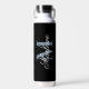 Chic Black Dusty Blue Monogram Calligraphy Water Bottle