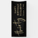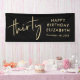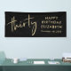 Chic black 30th birthday party banner and welcome sign with "thirty" showcased in a stylish gold script and your name and the date in modern gold lettering.