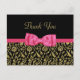 A chic black and gold floral damask thank you postcard with a chic hot pink satin style bow. Personalise this elegant design by adding a personal message. Flat printed image, not metallic or actual bow.