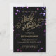 Sparkly bokeh confetti lights shimmer in a "shower" of translucent pink, purple and blue in the background of this fabulous and glamourous baby shower invitation, with a faux gold leaf writing "Baby Shower" in a chic fancy script. Please note this is NOT real gold leaf or glitter - it is a FAUX gold effect! Custom Artwork by Colleen Michele.