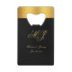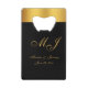These chic custom credit card wedding favours feature an elegant faux gold calligraphy script for your monogrammed initials, names, and wedding date to personalise on a simple black background with faux gold border. Best of wishes for your wedding and marriage! Designed by Susan Coffey.
