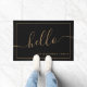 Chic Black Gold Script Hello Family Name Welcome Doormat