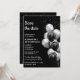 🖤 The design balances elegant styling with a chic sensibility. The deep black canvas makes the shimmering grey accents of the balloon cluster stand out, creating a luxurious feel that is both modern and timeless. The white confetti adds a subtle sparkle that catches the eye without overpowering the composition, keeping the focus on the important save‑the‑date invitation text. 🎈🌟
