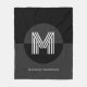 Chic Black Grey White Geometric Modern Monogram Fleece Blanket