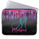 Chic black hot pink blue drips monogram laptop sleeve