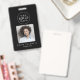 This chic black logo photo qr code business ID badge makes the perfect employee ID card! The simple dark design features classic minimalist black and white typography with a stylish sophisticated feel. Customisable in any colour. Personalise with your logo, employee photo, name, title or department, QR code, employee ID number and more!