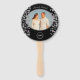 Simple, elegant, chic black wedding program hand fan with abstract silver grey fish pattern and photo. Perfect choice for contemporary summer beach weddings.