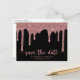 Chic Black Rose Gold Glitter Drips Save The Date Announcement Postcard