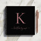 Chic Elegant Pink Rose Gold or Blush Pink Monogram Script on a chic Black Square Spiral Notebook. Easy to customise with your own name and details. Perfect for your luxury lifestyle! Makes a great journal or sketchbook! Please contact us at cedarandstring@gmail.com if you need assistance with the design or matching products.