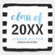 This chic graduation square sticker features a stylish black and white stripes background and the words "Class of" in blue watercolor and and you can add your relevant graduating year in bold black font. Use it to seal your envelopes, favour bags or for decoration. Check out matching graduation party items here https://www.zazzle.com/collections/119637323833384053