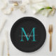 Chic Black Teal Green Monogram Modern Script Name Paper Plate