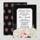Elegant wedding rehearsal dinner invitation done in black, with a white text area and pink accents. Gorgeous graphics of white and pink flowers, decorate the bottom of the invitation. Personalise the black text for your wedding event.