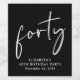 Chic black 40th birthday party wine labels that feature "forty" showcased in a modern white script and your name and the date in simple white lettering.
