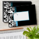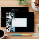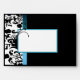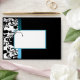 Black Invitation envelope, with a pretty black and white damask on the front left side and blue ribbon accents. Personalise the text to suit your needs. Customise to add any text to the front of the envelope.