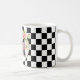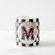 Chic Black & White Checkered Pink Floral Monogram Coffee Mug