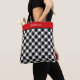 Personalised black white chess pattern with red band and calligraphy Tote Bag. Beautiful and modern Tote Bags!