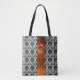 CHIC BLACK WHITE DAMASK ,ORANGE GEMSTONE MONOGRAM TOTE BAG